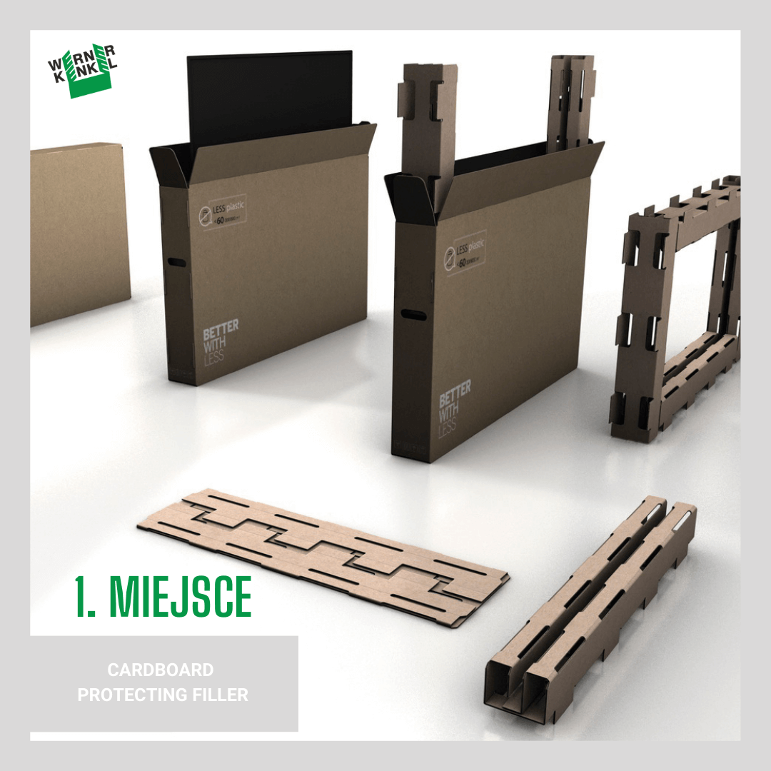 IDEA | Rocznie na świecie sprzedaje się niemal 300 mln telewizorów (2019). W samej Polsce jest to ok. 2 mln sztuk (2021). Każdy z nich wyjeżdża z fabryki zapakowany w pudło z tektury. Każdy jest zabezpieczony na czas transportu. W zdecydowanej większości zabezpieczenia stanowią formy ze styropianu bądź innych tworzyw sztucznych. Każdorazowo więc, końcowy użytkownik telewizora jest zmuszony do zutylizowania sporych ilości zabezpieczeń z tworzyw sztucznych. Mnożąc to razy roczną sprzedaż uzyskujemy około 60 mln m3 , czyli objętość 18 tysięcy basenów olimpijskich, szkodliwych odpadów. Obecne rozwiązania są wysoce nie ekologiczne, uciążliwe (nieopłacalne) w recyklingu, a składowanie ich jest szkodliwe dla środowiska. Tak powstała koncepcja wypełniacza zabezpieczającego wykonanego w całości z tektury. Alternatywne rozwiązanie dla obecnie stosowanych zabezpieczeń. Rozwiązanie z materiału ekologicznego, gotowego do recyclingu i biodegradowalnego. BETTER packaging WITH much LESS waste