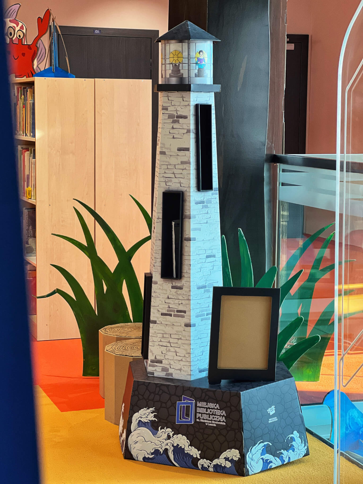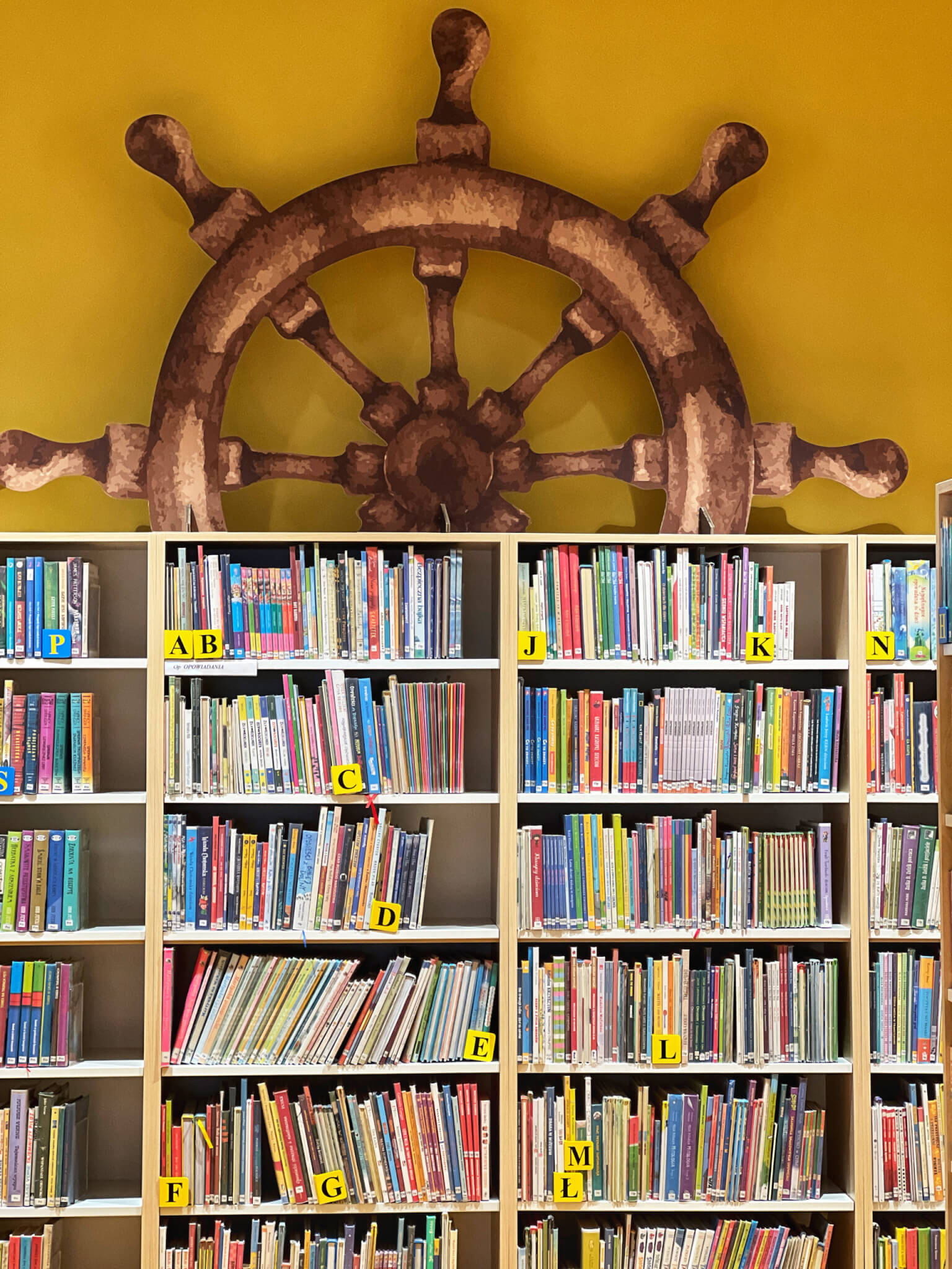 Ein Teil der Bücher ist jetzt in großen Eichenfässern untergebracht, und vor dem Eingang gibt es eine riesige Schatzkiste und einen Foto-Hintergrund. Es gibt Anker, Steuerräder, Leuchttürme und ganz viele Meerestiere.